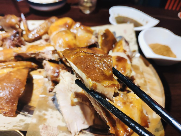 【长安葫芦鸡】这道被评为“ 陕西 十大经典名菜”之一的葫芦鸡,来到 西安 怎么可以不品尝。可惜,感觉有点小失望,因为整只鸡根本就一点味道都没有,全靠蘸酱。