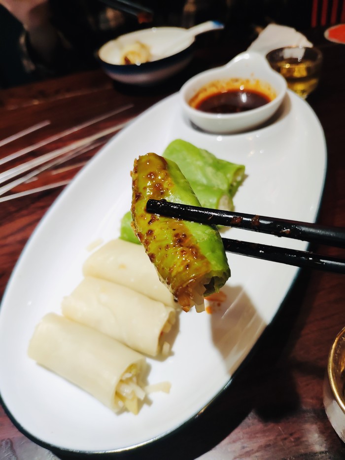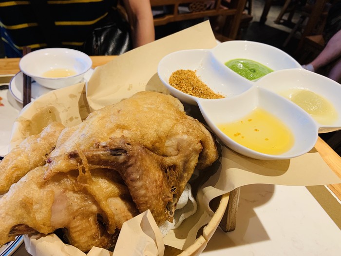 这里首推【黄金琵琶烤鸡】皮脆柔嫩,两种酱料可自行选择,本君更偏爱干粉蘸料,不过吃得多会稍微有点咸。