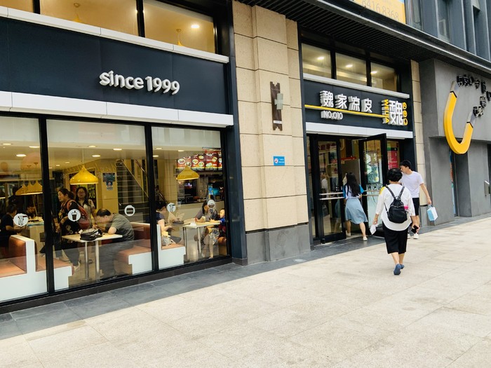 魏家凉皮是西安当地的一家著名的连锁加盟店,有种快餐的感觉,遍布西安各地。这里的凉皮那是相当的出名,很多外来游客来到西安都要吃一次魏家凉皮。