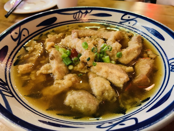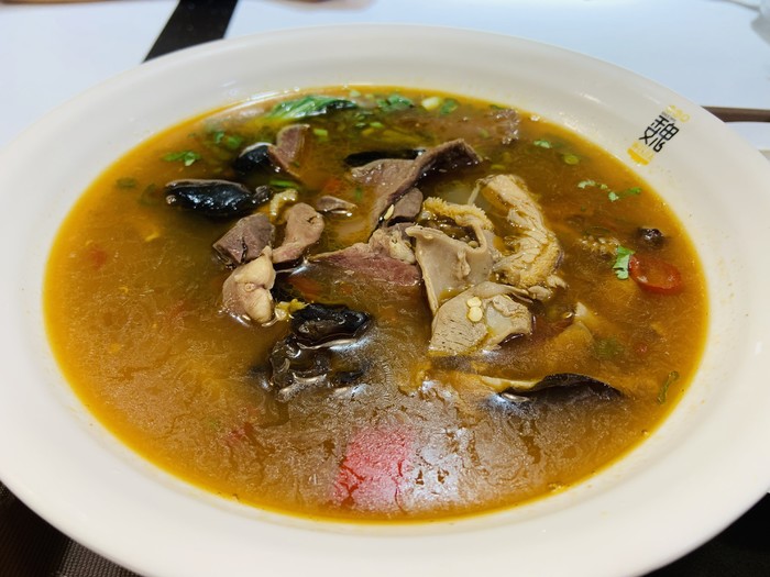 【浆水菜豆腐】是那种很老的豆腐,我个人喜欢吃嫩嫩的豆腐,整盆菜看起来就没什么食欲,不是我的菜。