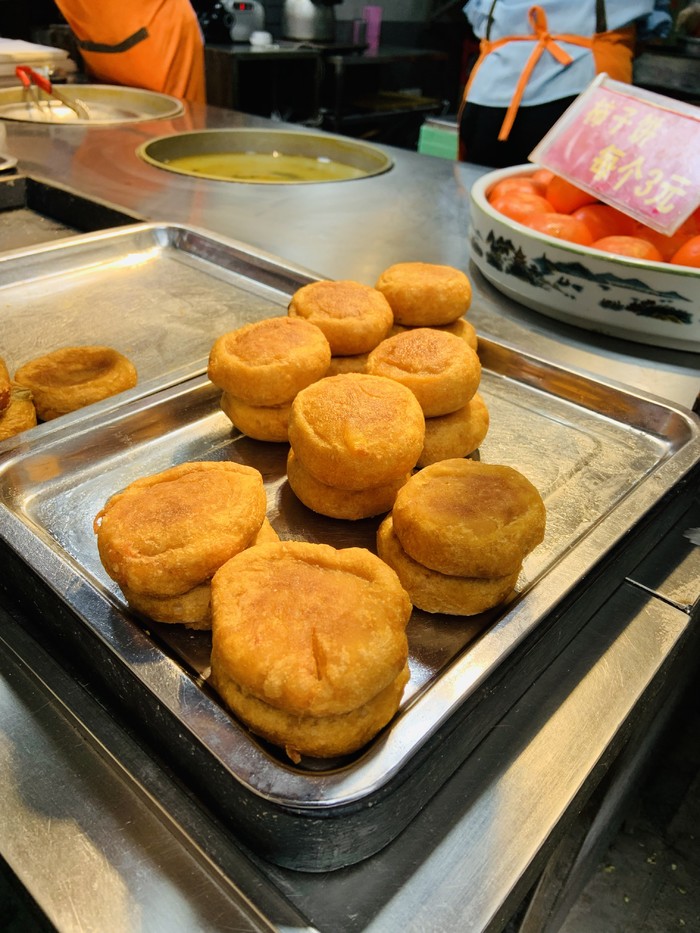 【柿子饼】有各种口味,饼里面含有馅料,我们点的是豆沙馅,要下去软糯软糯,柿子饼里面裹着豆沙馅,十分香甜。