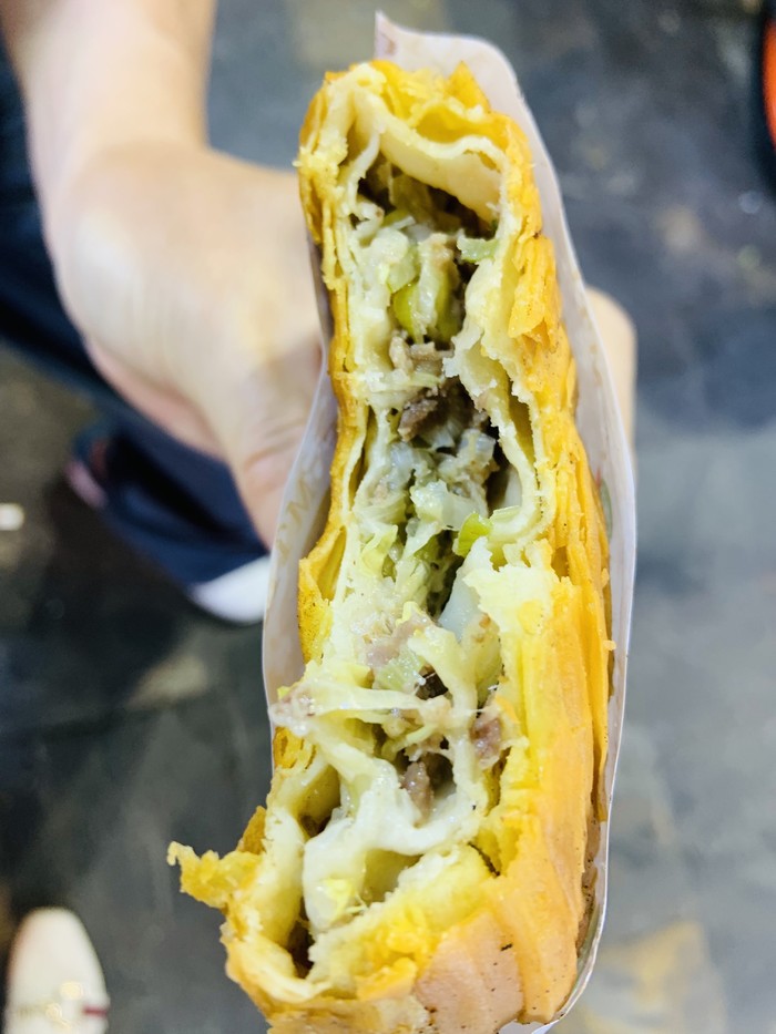 【子長煎饼】这个煎饼可是有将近650年历史,特制的米粉皮包裹着一块小酥肉,配上酱料,吃完后唇齿留香。