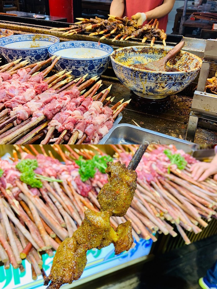 【红柳羊肉串】在回民街到处都是这个食物,可以说是招牌特色了,长长的红柳上串着大块羊肉,肉不肥,适合我这种不吃肥肉的人,很香,可以买来尝尝。