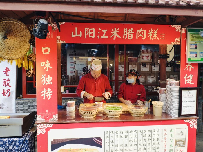 永兴坊也是一条小吃街,但是里面的食物跟回民街截然不同,回民街吃的是清真的食物,这里吃的是关中的食物。