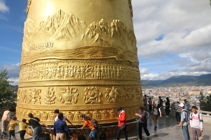 这个转经筒非常重,得要跟其他游客一起齐心协力才能转的动。边转的同时,我也在心里默念着自己的心愿希望能够得到成真。