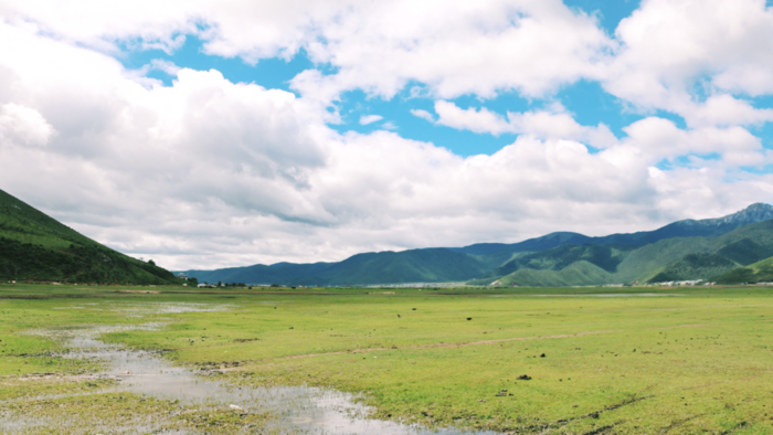 纳帕海位于香格里拉县城西北部,是高原季节性湖泊。纳帕海四季景致各有特色,夏末秋初是雨季,此时水量较大,纳帕海是一大片湖泊。