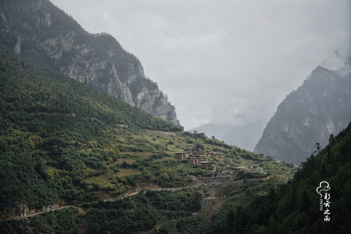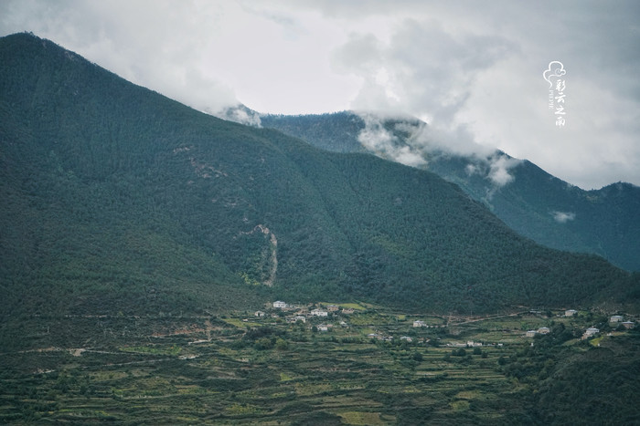 在云雾缭绕的天空下,在飘忽不定的小雨中,深埋于群山之间的这个小小村落,怎就有了几分清新的味道。