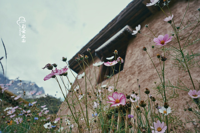 墙角的格桑花开得甚好,迎着丝丝细雨,散发着淡淡清香。