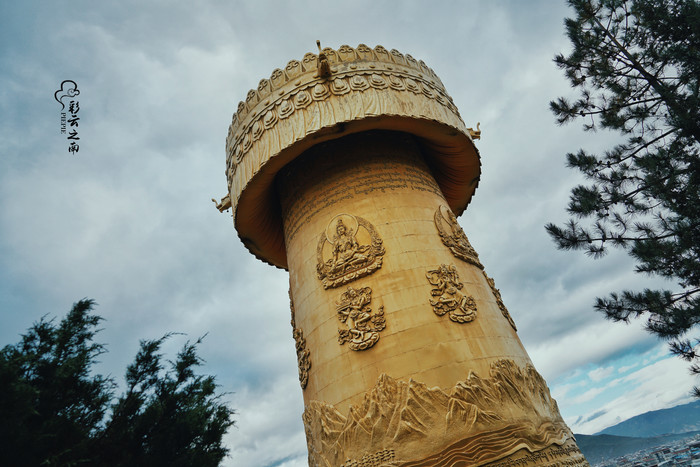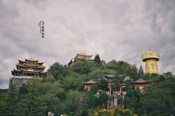 夺目的转经筒在一片郁郁葱葱中,显得格外惹眼,还未到夜深,似乎就散发着耀眼的光芒,等待着虔诚信众们的到来。