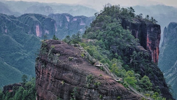 在这里,有着高原最壮观的高空栈道,建在悬崖之上。或许身在其中并不觉得险峻,可是换个视角看就完全不一样了,远远看,它就好像一条玉带缠在腰间。