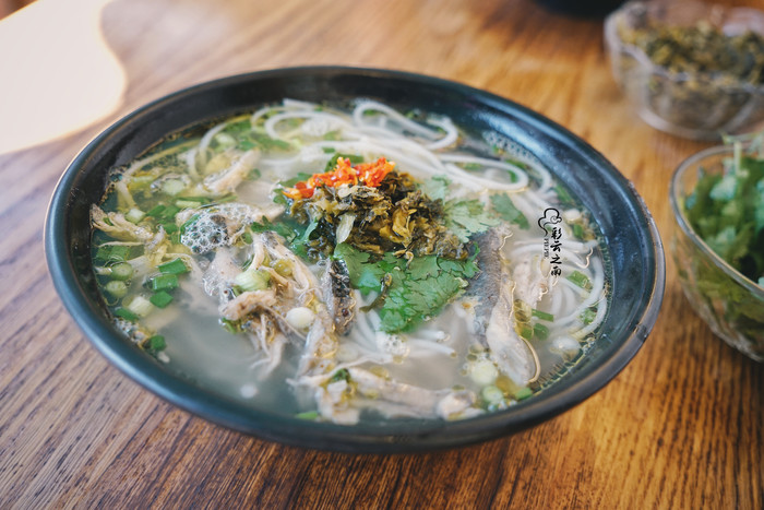 主打的就是这碗土鸡米线,鸡肉用的是乌鸡,汤头的味道刚刚好,没有特别惊艳,但是早餐必备哦~