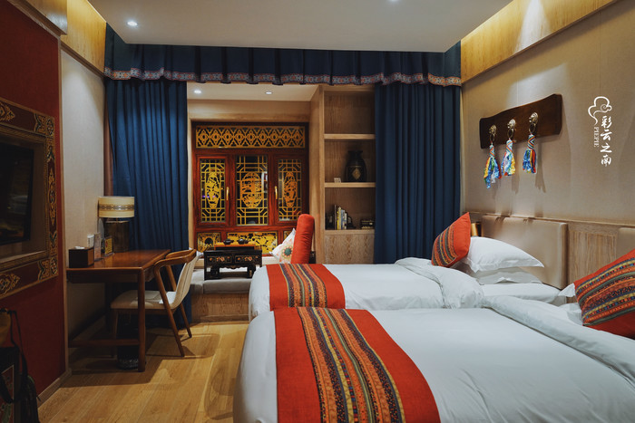 我特别喜欢房间的风格,浓浓的藏式风味,每一个小细节都恰到好处,无处不在的都是满满的异域风情。