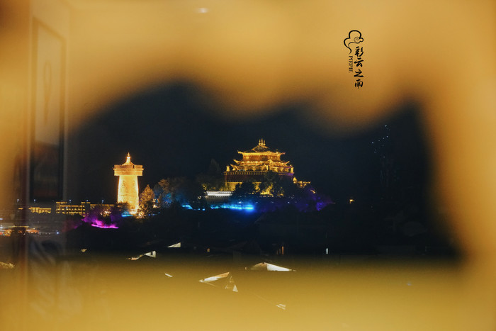晚上隔着窗户,还能看到龟山公园,夺目的转经筒散发着迷人的光。