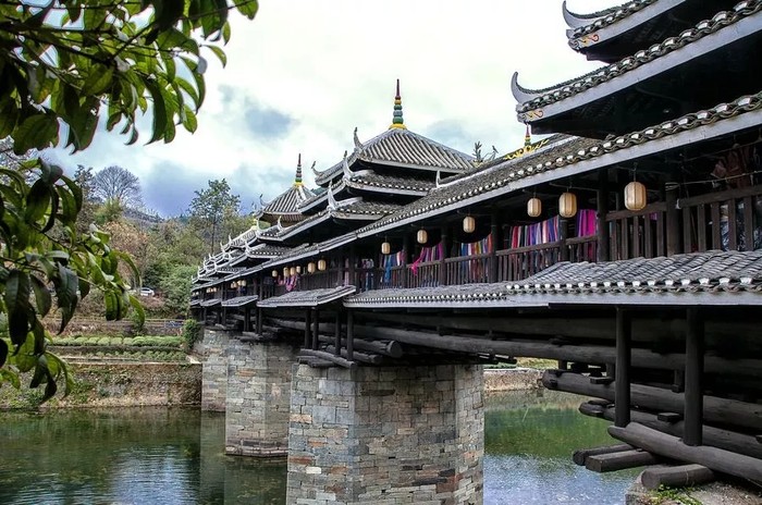 出于改善村寨风水条件和方便居民生活考虑,多数苗寨在村寨附近建有风雨桥,以关风蓄气和挡风遮雨。