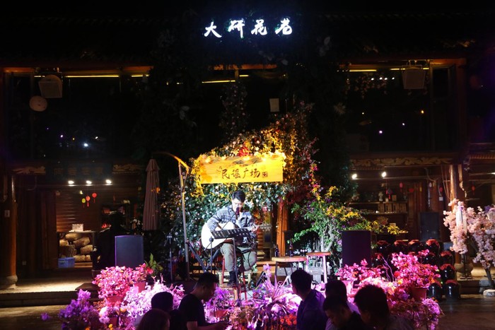 吃完饭接着晚上8点在大研花巷民谣广场准时开唱,歌者或用吉他、或以动情的歌声为游客传递丽江的独特音乐情怀,为丽江游客献上燃爆古城的音乐之旅,也造就暑期丽江旅游不可错过的打卡点。