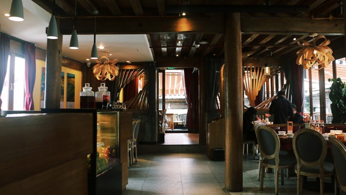 这家餐厅很有当地的特色,店里的装修传承了传统的纳西建筑风格,简单大气!