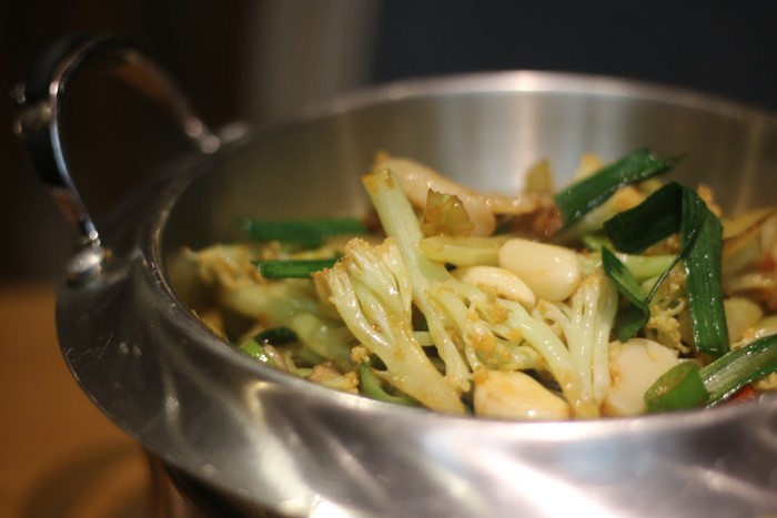 [干锅花菜] 俗话说的好,荤素搭配营养均衡,花菜吃起来很嫩很鲜,不是很干涩的那种,里面的肉很嫩同时还提升了菜的鲜,口感很好。我们来的时候已经开始快要排队啦,没想到这家店生意那么火爆,吃完饭走出去的时候外面已经有好多人在等号了,不得不说,店里不论从装修、服务到菜的口味都是很棒的,看了菜单还有好多菜,难为肚子只有那么点,只好下次再来啦
