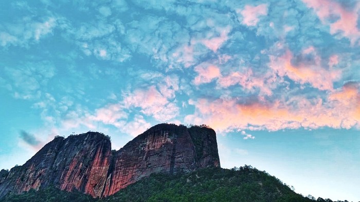 黎明位于老君山景区内,以丹霞地貌著称。300多平方公里的土地上,有200多平方公里的丹霞地貌,是我国西南区最大的丹霞地貌群,也是全国最大的丹霞地貌之一,黎明的丹霞地貌是国内发育最完好的。黎明多红石,每道悬崖每个山峰都有红石。传说太上老君曾在离这里不远的老君山上炼丹,不小心滴落了炼丹的火焰,于是造就了黎明地区那火一样的丹霞风光。