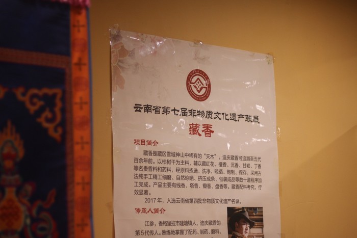 在独克宗古城里面,有个非遗体验中心。里面可以体验到古老藏香唐卡的技艺传承—松林藏香