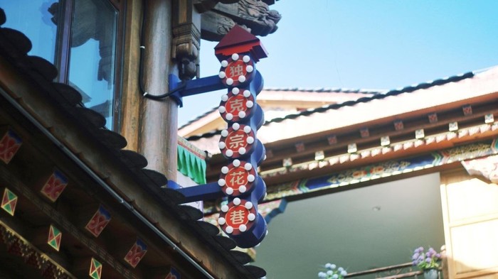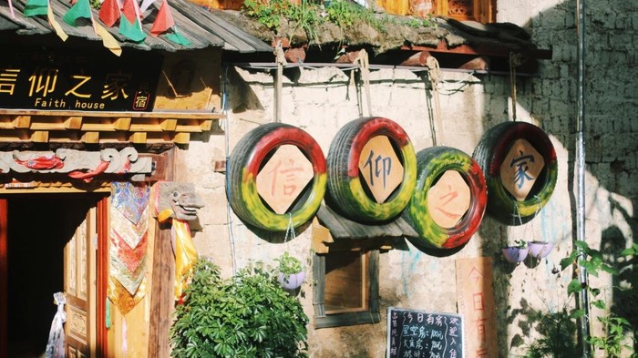 酒店的招牌不大,没有那么大的商业气,也不会破坏古城花巷的藏族风味。但因为位置显眼所以还是比较好找的。