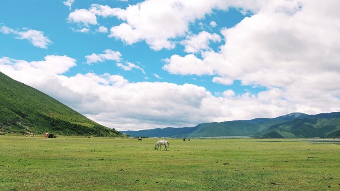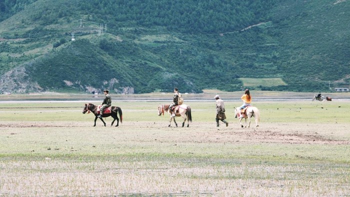 都到了大草原了,当然要体验一下骑马。马儿的速度很慢,还会有藏民帮忙牵绳,之前完全没有经验的女孩子也可以安心体验。