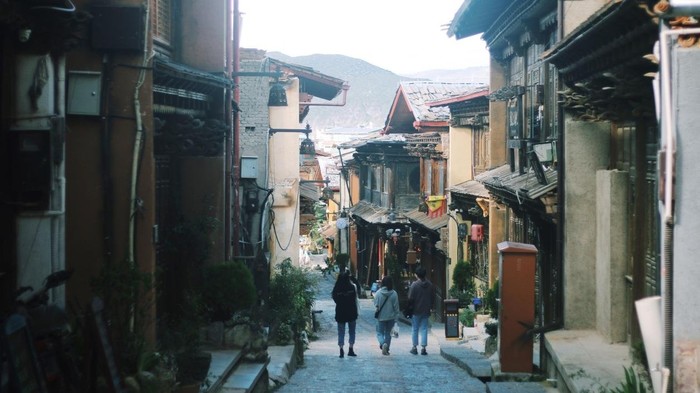 独克宗古城是依山势而建成的,所以路面起伏不平,有很多上下坡。而且路面都是一些凹凸有致的石头铺成的,不是特别好走。但一个人漫步其中会觉得很宁静,很放松。