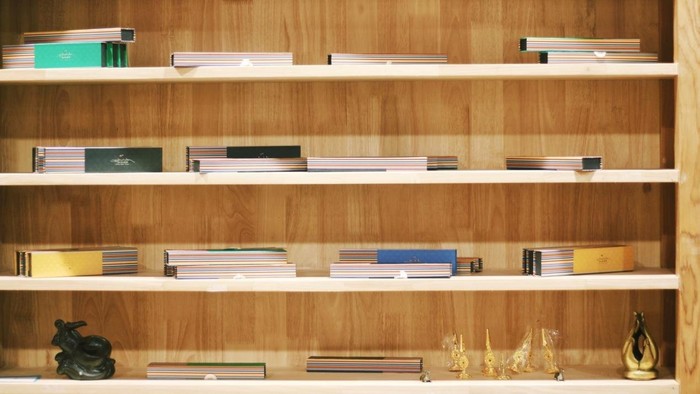 展架上摆放着很多成品的藏香,非常整齐漂亮,你很难想象这是纯手工制成的。