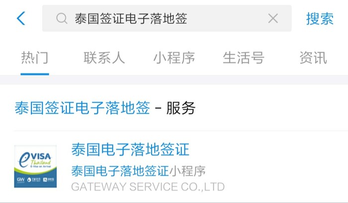 君君立即在支付宝去搜索「泰国电子落地签证」,点击进入后,会到下边这个页面。
