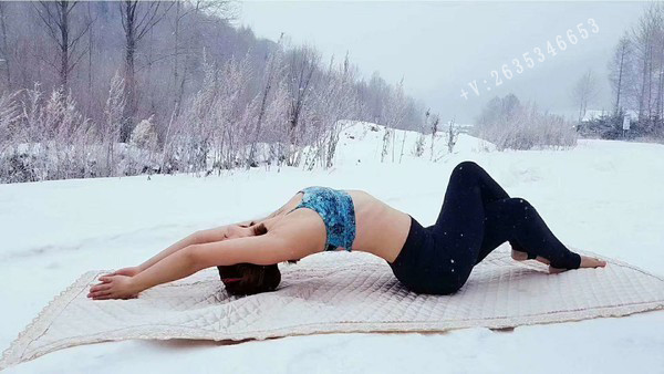 不冷,一点也不冷哈才怪,雪地瑜伽开始