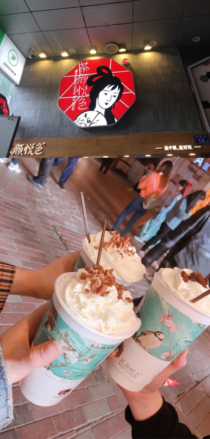 我跟同事喝了幽兰拿铁,果然好喝,闺蜜那个是蔓越莓啥的,不记得了,都是全糖,加冰,我跟闺蜜都觉得好喝!!!!不腻,淡淡的茶香配着淡奶油,好喝!!!!幽兰拿铁上边是碧根果!
