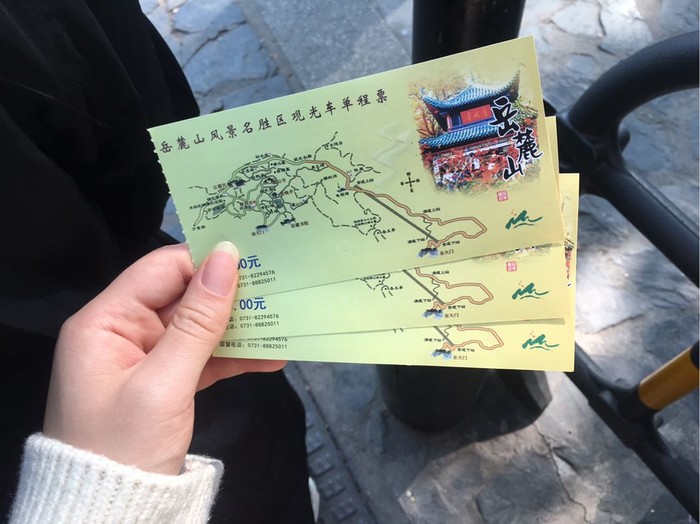 大门口买票就可以了,可以买来回的票,但是我放弃了,我们回来的时候要去爱晚亭跟岳麓书院,就没有买来回的,大家按自己所需进行购买哈。