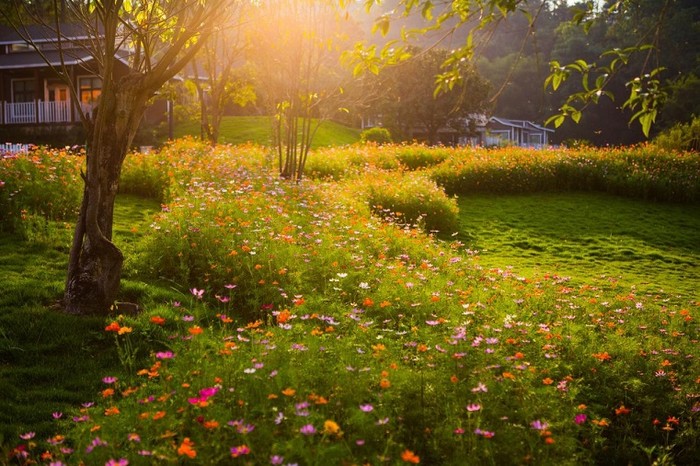吃完饭,休息好,沿着林荫小道散步。野外青山、隐逸田园、鸟语花香,这里处处都是风景。