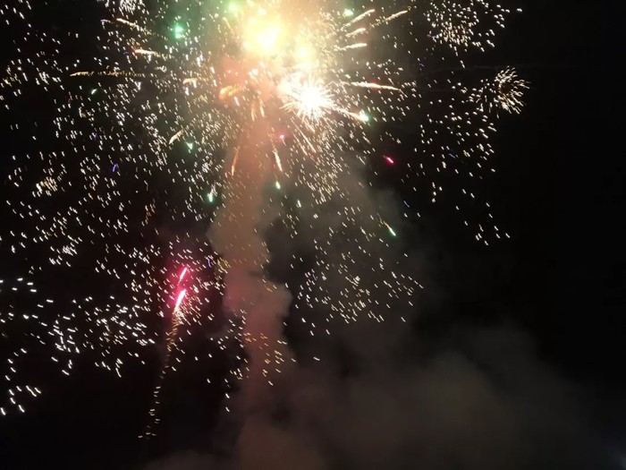 一边吃一边享受着迎面而来的徐徐微风、阵阵花香和灿烂的烟花,简直惬意!