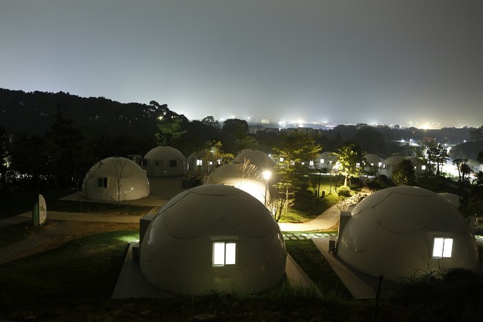 园区内的住宿很有特色呢,房车区,木屋别墅区,帐篷露营区等,看你个人需要。想看星星的,这里也可以满足哟!个人比较喜欢房车的,哈哈哈!