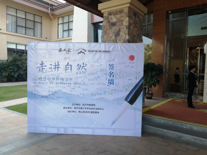 刚下大巴,迎接我们的是一个大大的签名墙,孩子利落签上自己的大名,看到墙上孩子们留下的笔迹,我这个用惯了电脑键盘的家长,立即汗颜起来!