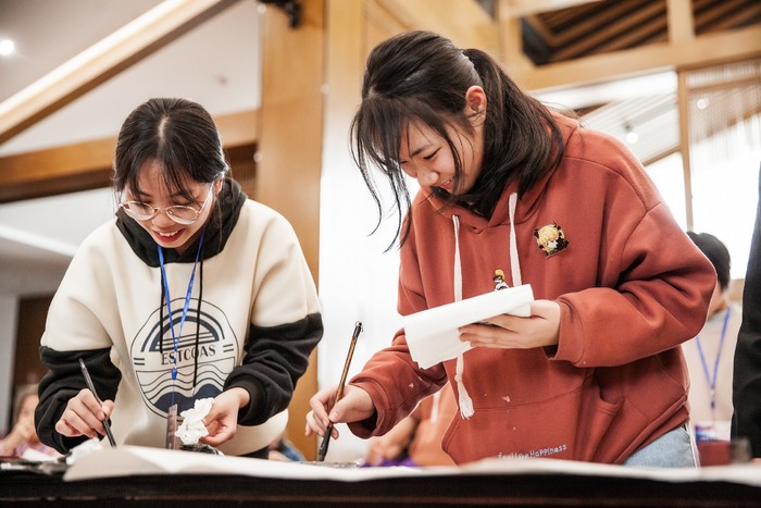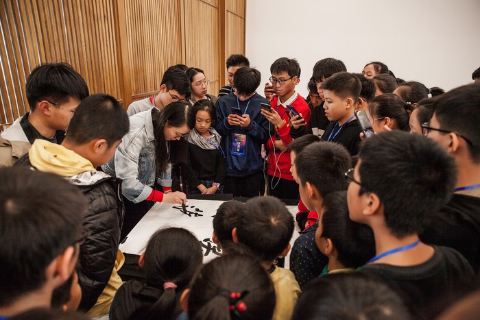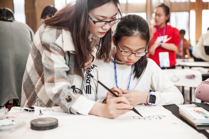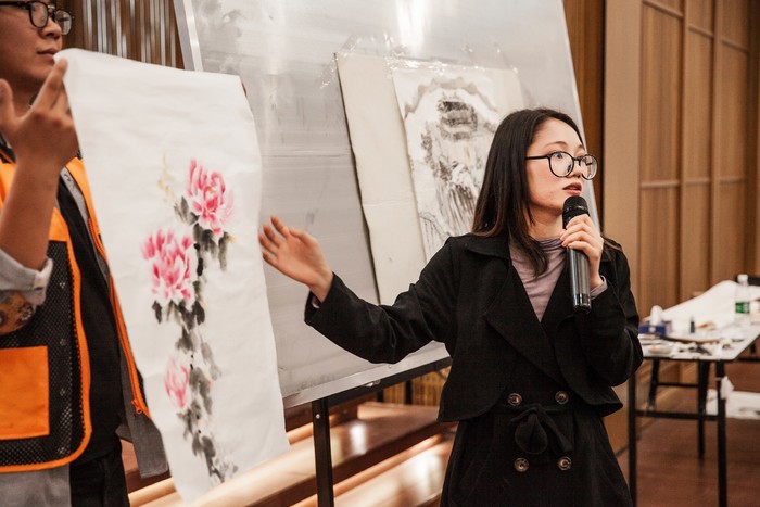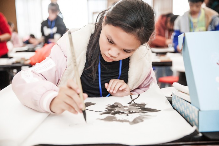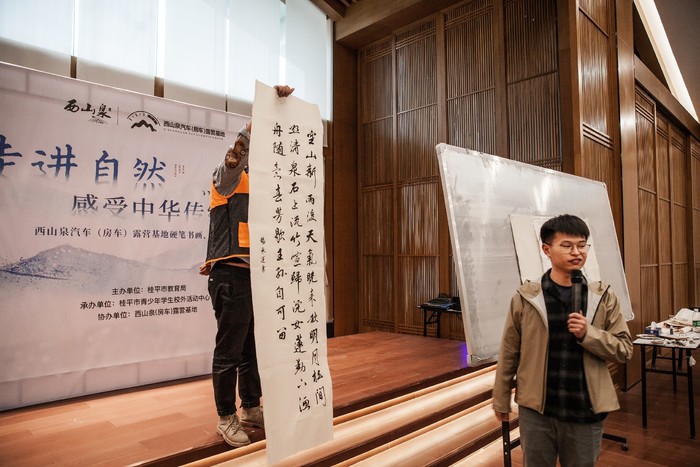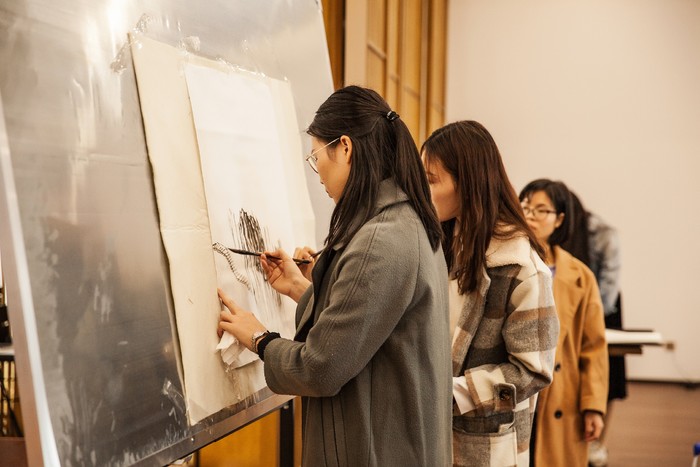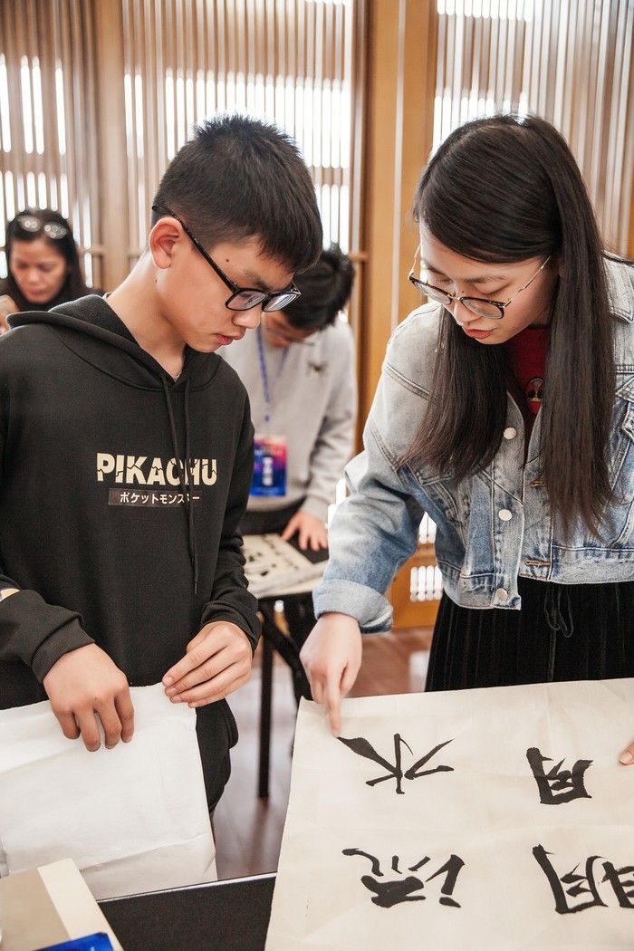 平淡无奇的墨汁在老师们的毛笔下,渐渐变出了精致的水墨画卷