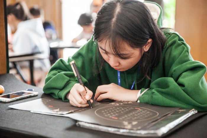 创作过程中大家开始一起交流,互相分享自己的知识与观点,很快大家的脸上都挂上了笑容!
