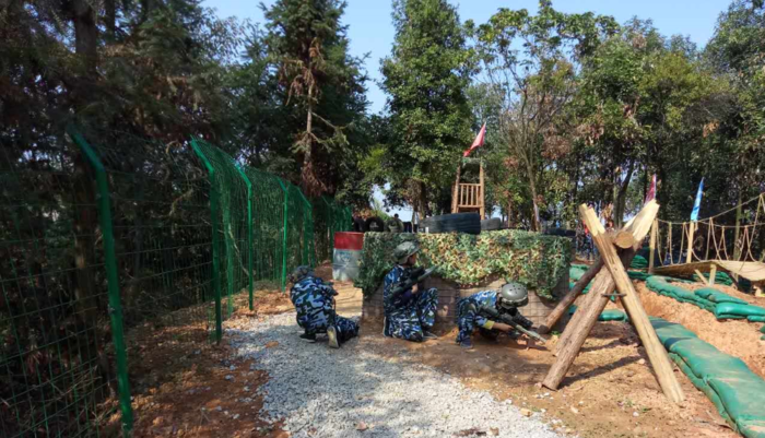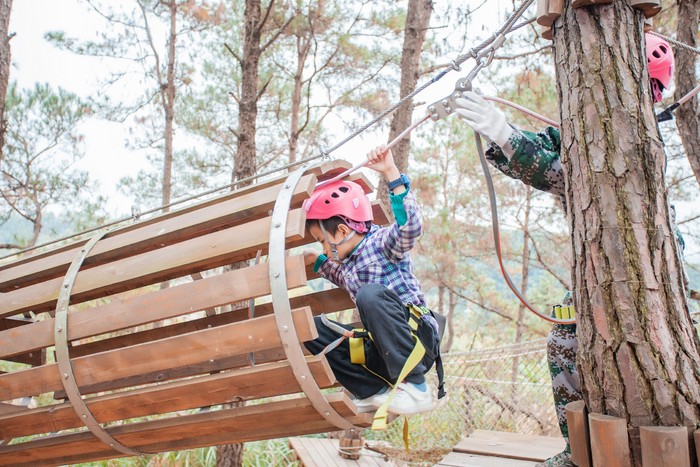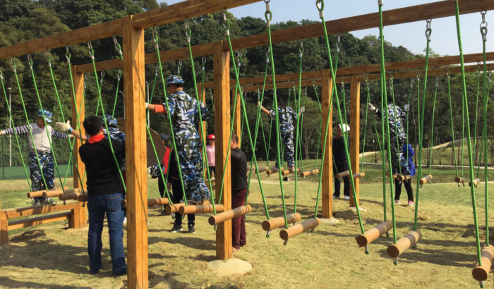 在老师的安排下,吃完营养早餐便开始体验营地的-户外拓展活动!