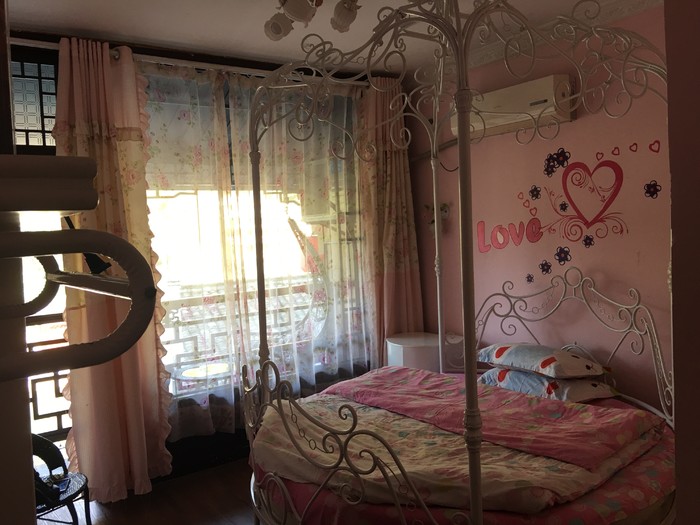 房间粉彤彤的风格让我们两个钢铁直女一开始有点小小的不能接受啊哈哈)