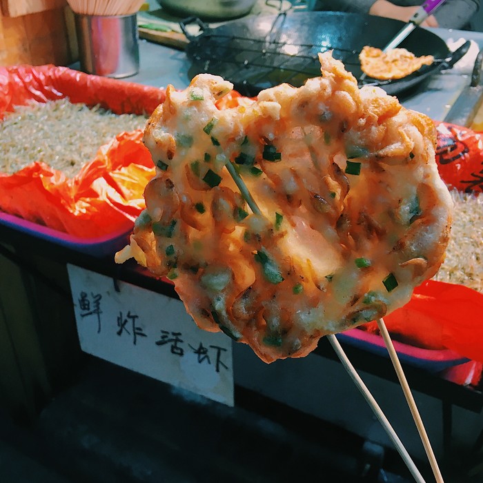 在沱江边的一家虾饼店,这家是这几天吃到的最好吃的虾饼!)