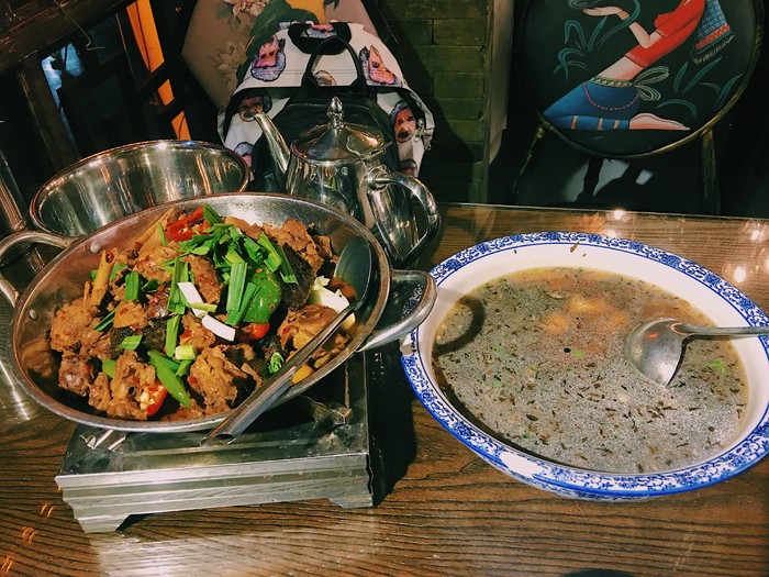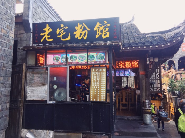 结束了苗寨游,回到古城,由于待会还要看表演时间有点儿赶所以随便找了家店解决晚餐。