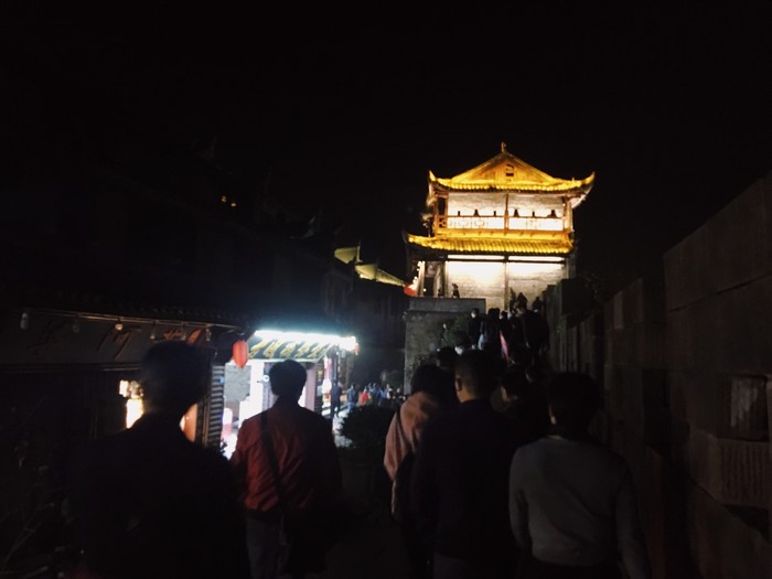 夜游沱江过后,继续漫步于古城内。