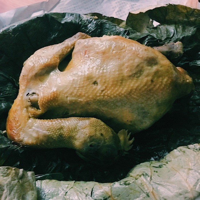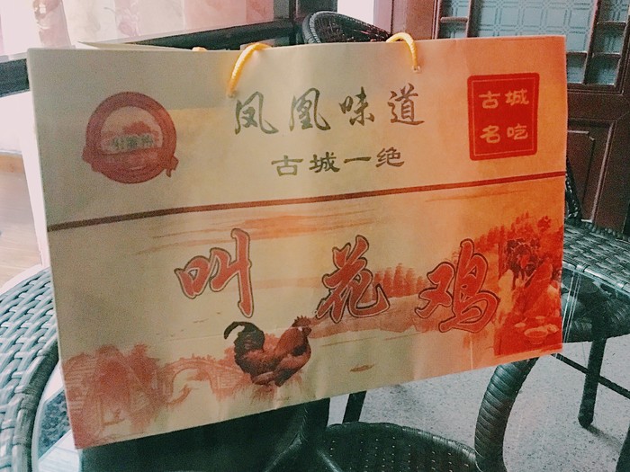 在古城内瞎逛了好久(其实是不太认识路,而且导航不太靠谱),终于回到了客栈,回去的路上看到有家店在卖叫花鸡,虽然有点纳闷这不是江苏名菜嘛难道洪七公他老人家也和我们一样历经险阻长途跋涉将这道美味带来这片湘西土地上了吗,但是还是抵挡不了肉的诱惑买了一只带回客栈。