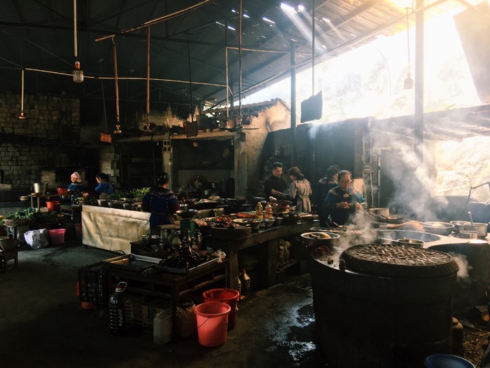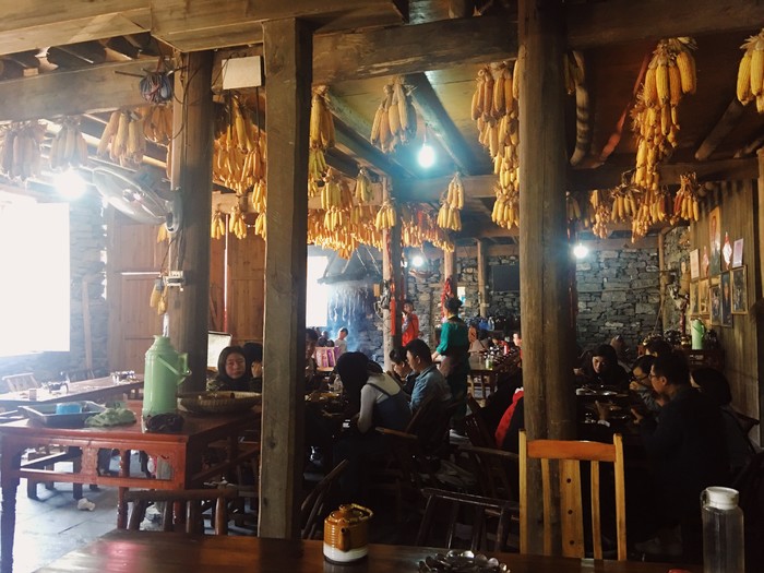 游览完老家寨之后,差不多就到饭点了。原本团费就包含一顿午餐,但是导游说那份餐食很难吃,在征得全团的一致同意下每个人多加收10元带我们来到一户人家吃正宗的苗餐。