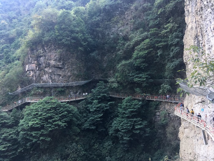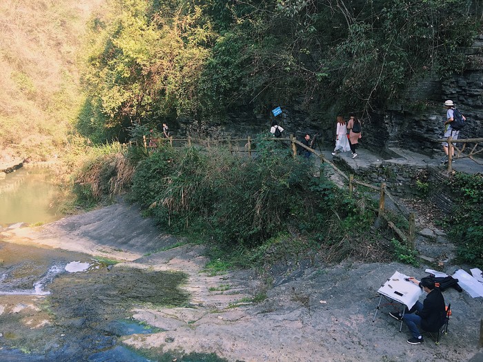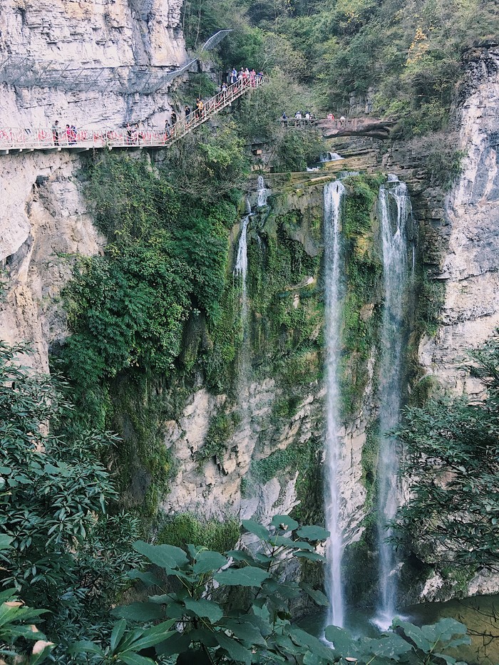 来飞水谷只为看这个传说中湖南境内首屈一指的大瀑布……emmm感觉也还好,估计是因为来的不是时候错过了丰水期,只不过走了好久的路结果看到的是这番景象难免有点儿失落)