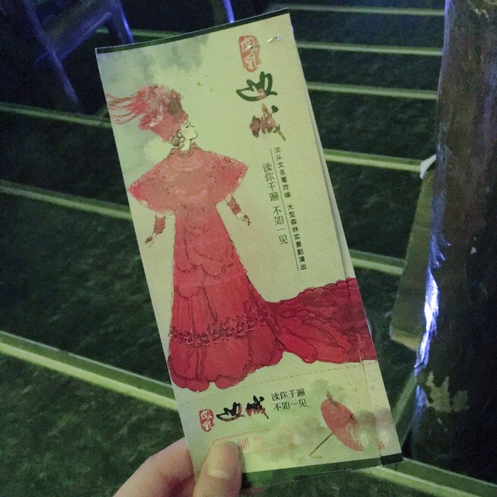 凤凰的演出表演主要有实景剧演出和篝火晚会,原本客栈老板推荐我们看一场篝火晚会和一场实景剧演出,而且建议我们先看篝火晚会再看实景剧演出,层层递进,按他的话来讲就是如果先看了实景剧再看篝火晚会的话会觉得篝火晚会的钱花得不值hhh(没有说篝火晚会不好看的意思!二者各有特色都很值得体验,只是先看实景剧再看篝火晚会可能会觉得有落差),但是听闻我们时间安排比较紧,所以推荐我们直接看实景剧演出就好了。