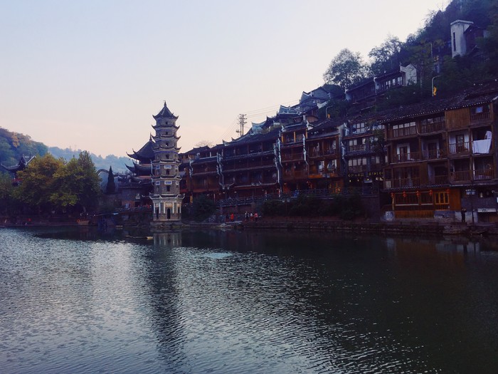清早从闲适的凤凰古城中获得幸福