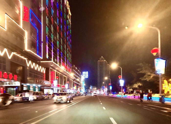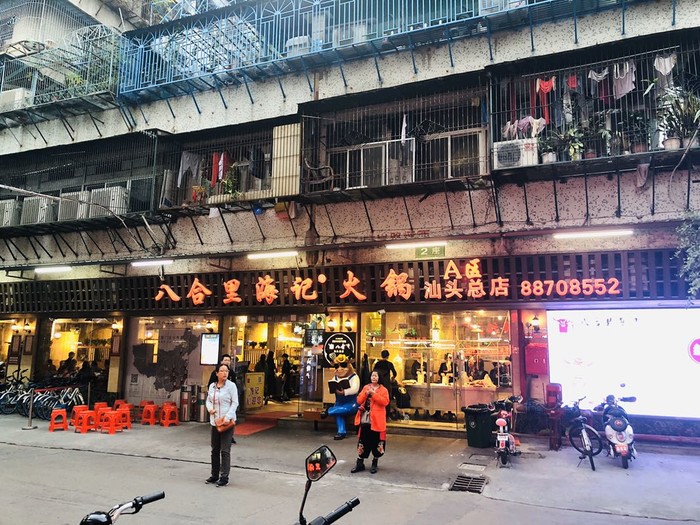 吃完出来华灯初上,外卖区人头攒动,场面有点魔幻。