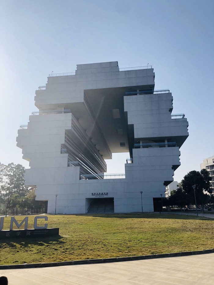 医学院的教学楼挺酷的,校园不算特别大,游客比学生多。外来车辆不让进,游客进去需要刷身份证。