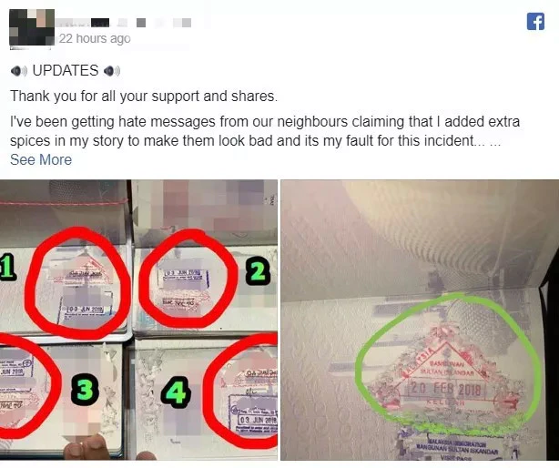 有位网友在脸书上分享,之前和家人离开大马,本来护照上红色出境章上的日期应该是2018年6月4日,但是入境的工作人员竟然盖上2018年2月20日的章,也就是说时间倒退了将近4个月!